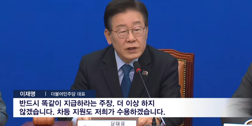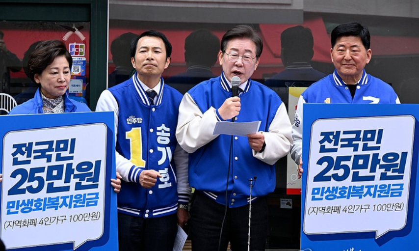 윤석열 대통령은 이 대표의 민생회복지원금을 "무분별한 현금 지원과 포퓰리즘은 나라를 망치는 마약"이라며 반박했지만 이번 국회의원 총선에서 과반수 이상의 의석수를 차지한 덕분에 공약이 실현될 가능성이 높아 보입니다.